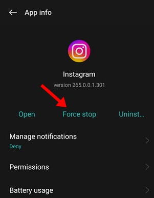 This action will forcibly stop all Instagram activities on your Android device. After executing the force stop, reopen the Instagram app and access the camera to see if any issues are resolved.