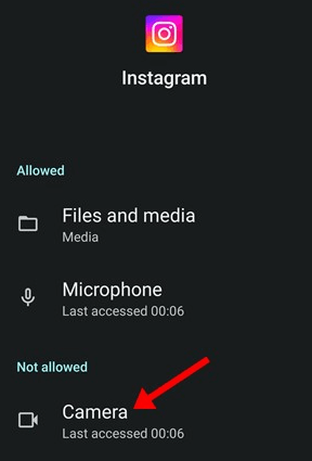 - Check to ensure that the camera permission for the Instagram app is not set to ‘Do not allow.’