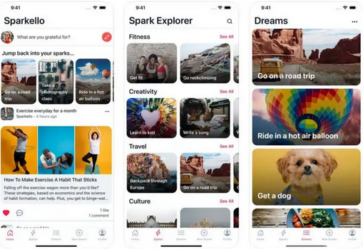 Why do you want to make a vision board? For that, Sparkello is a great app. In the app’s area, you can find goal inspiration to follow. Giving the app a social media feel, you can respond to ideas and read or create posts. Also, Using the app’s Dreams tool, you can add your goal and choose a picture to create your board.